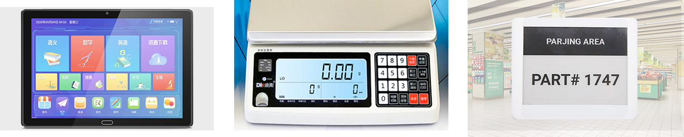 具有高对比度,高色域,触显一体化,耐高温和支持整体解决方案等特点,可支持(半)定制化;